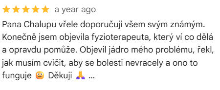 Pracujeme s bolestí, vždy dle tolerance pacienta. Cílem je zlepšení funkce, ne zbytečné trápení.